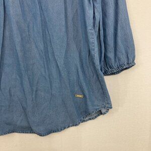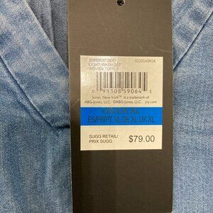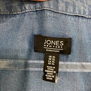 New Jones New York size XL Blue V Neck 3/4 Sleeve Lyocell Chambray Blouse