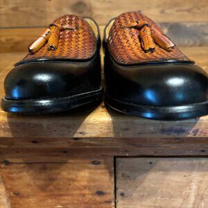 New without the box, these high-end Men's Loafers are all leather inside and out. Joseph Abboud is known for style and quality in the menswear industry. Two toned black/cognac. Made in Brazil. Size 9