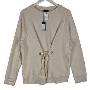 The Loop Back Eyelet Sweater takes the understated, oversized sweatshirt and stamps it with a distinctly feminine feel. Pure cotton, sports-style top with waist-cinching detail - large eyelets and thread-through grosgrain webbing tie - resulting in a relaxed yet silhouette-enhancing design.