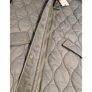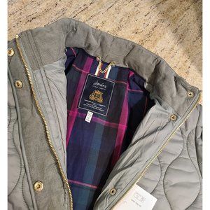 New! Joules Women US4 UK8 Rosedale Gray Soft Khaki Quilted Jacket Plaid Lined Corduroy Trim