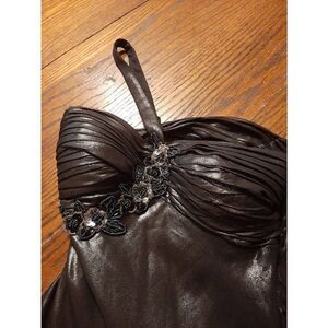 New With Tags Attached Women's Juniors Jr Size 3 Blondie Nights by Stacy Sklar Sleeveless One Shoulder Black/Grey Shimmer Open Back Formal/Semi Formal, Ball Gown, Prom, Homecoming, Wedding, Bridesmaid, Evening Cocktail Maxi Dress Style 51033- Lined
