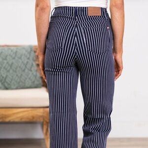 Awesome new tummy control jeans dark denim with white pin striped. Straight leg high waist. With tummy panel. Stretch and the most comfy jeans ever and very well made by JUDY BLUE. retail $79. Sz 7/28 inseam 32.5” inseam 11”.