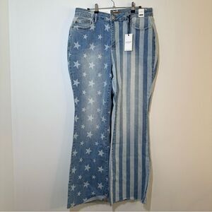 New Judy Blue High Rise Medium Wash Stars And Stripes Flare Jeans Size 16W