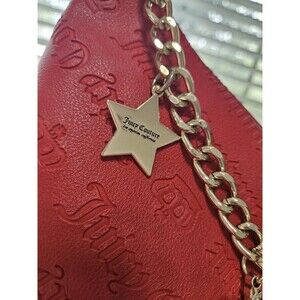Elevate your style game with this gorgeous Juicy Couture Not Your Babe Hobo Cool Red Bag. The medium-sized shoulder bag is made of high-quality faux leather and features a zip closure, pink handles/straps, and gold hardware. The bag charm accessory adds a touch of uniqueness to the bag, making it the perfect accessory for any occasion.
