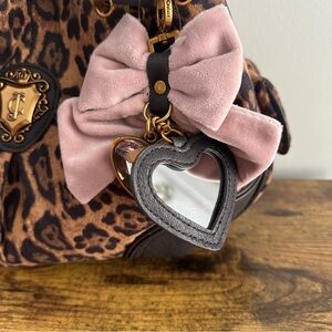 New Juicy Couture Romance Satchel Tote Leopard Handbag Viral Pink Bow Bag Charm