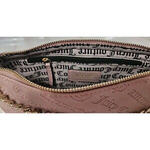 This beautiful pink Juicy Couture shoulder bag is the perfect addition to any outfit. With a crescent shape and a zip closure, this medium-sized bag has a width of 10.23 inches, a height of 6.02 inches, and a depth of 1.65 inches. The bag features a pink faux leather shoulder strap with a drop of 6.65 inches, making it suitable for both casual and party/cocktail occasions.