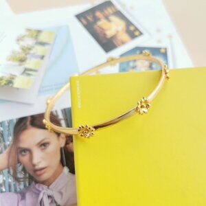 New Julie Vos Floral Bangle Bracelet Size M 24K Gold Plate
