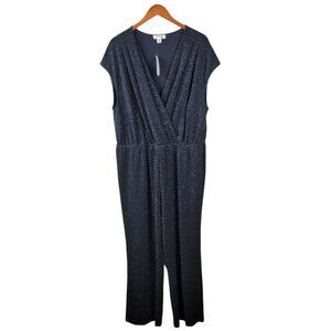 New Jumpsuit Plus Size 3X Playsuit Silver Black Stretchy Evening Event Wrap Top