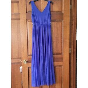 New without tags. I had this dress in my boutique and how it never sold is beyond me. Absolutely beautiful, yet simple, royal blue long dress. The slip underneath goes to the knee area, so it could easily be altered into a short dress. The beading around the waist is gorgeous. It is plain in the back. Just a beautiful dress!