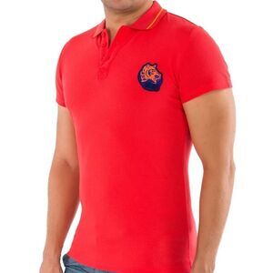 New Just Cavalli Men XXS US/EU 44 Red Tiger Embroidery Classic Polo Shirt Tee