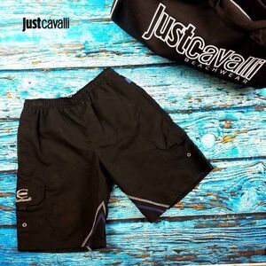 Feature Just Cavalli branded elasticized waistband, 3 pockets, internal mesh slip