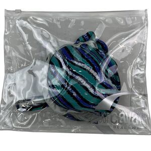 Step into style with this Just Cavalli Women's Stretch Bikini featuring a stunning blue and silver striped pattern. This luxurious two-piece swimsuit offers a chic and flattering design, complete with metallic silver ruffle accents that elevate its visual appeal.