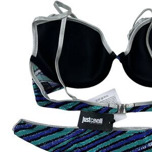 New Just Cavalli Women S US/EU 42 Stretch Bikini Blue Push-Up Two-Piece Swimsuit