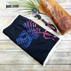 New Just Cavalli Men Black Printed Beach Swim Shorts Board Swimsuit Trunks S US EU