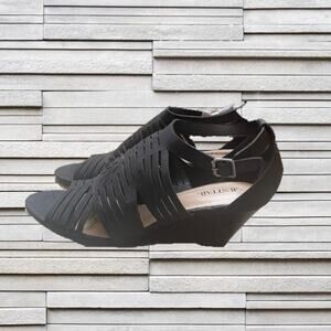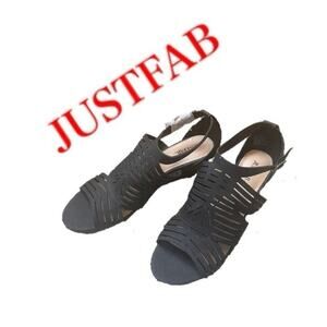 Brand new black summer wedges from JUSTFAB. Buckle closure. Great with jeans, shorts , skirts and dresses! From a smoke free home.