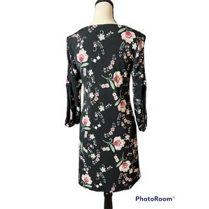 New KAARI blue Dress in Black Pink Multicolored Floral w/Cutout Sleeves Size XS