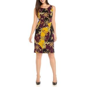New! KASPER Women's Ornate Print Stretch Crepe Sheath Dress Size 10