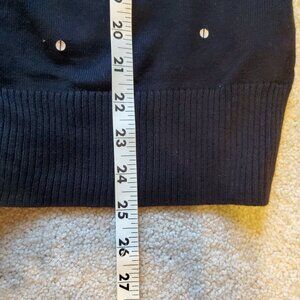 Get into the holiday spirit with this festive, new with tags KB Collections cardigan! This long sleeve, full button up black sweater is made from a soft cotton/acrylic blend and is adorned with embroidered snowflakes, snowmen, and sequins. Perfect for work, a casual day out, or a Christmas party. The sweater is machine washable and is available in size XL.