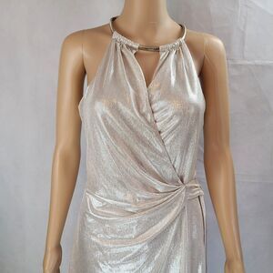 New KENSIE Women's (8) Champagne Gold Chain-neck Sleeveless Side-Tie Dress $128