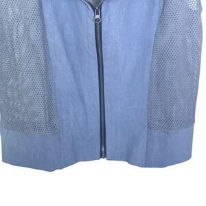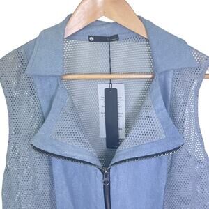 Brand New with Tags, New KRISA x Revolve Mixed Coated Knit, giving the Front a Sueded Leather Feel and the back is Mesh Vest in Slate Blue Gray Cotton/Modal/Spandex Blend, Collared, Full Zip Closure MSRP: $198