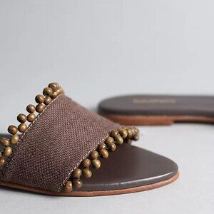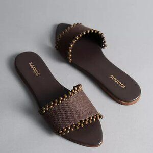 New Kaanas Cala Asymmetric Linen Slide in Chocolate brown flat sandal