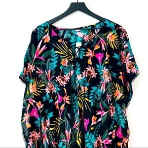New! Kaftan Floral Tropical Kimono Bohemian Poncho Swim Coverup