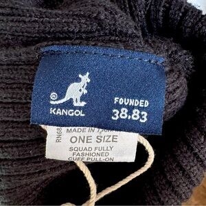 Made from soft 100% acrylic for warmth and durability, it features a classic cuffed design with a tan brown Kangol logo patch at the brim. One size fits most for easy gifting and everyday wear.