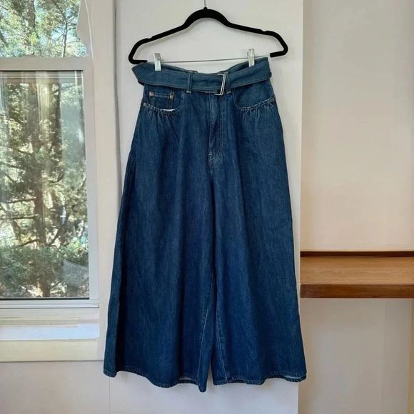 New Kapital Wide Leg Jeans Belted Denim Jeans Blue