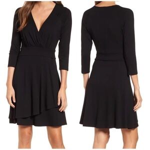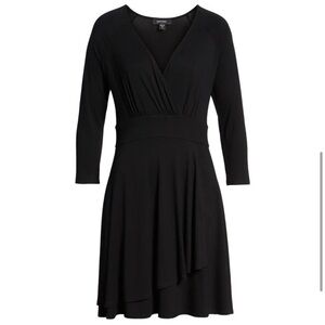 New Karen Kane Faux Wrap Drape Front Dress 3/4 Sleeve Career Office Black Sz M