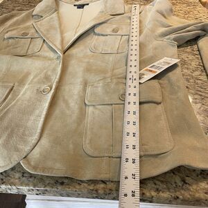 New Karen Kane NWT 3X Khaki Suede Leather Jacket Retro Boho Oversized. Condition is New with tags. Shipped with USPS Ground Advantage.