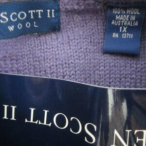 The product is a new Karen Scott II women's 1X lavender purple long sleeve wool cardigan jacket, designed in Australia. This stylish sweater features a solid pattern, gold tone buttons, and pockets for added flair. With a knit fabric type and made with high-quality wool, it is perfect for the winter, fall, and spring seasons. Perfect for plus-sized women looking for a cozy and chic addition to their wardrobe.