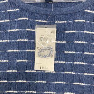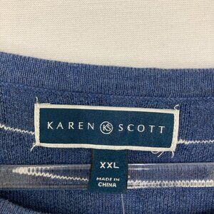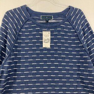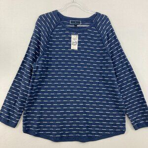 New Karen Scott XXL Blue White Cotton Crew Neck Textured Raglan Sleeve Sweater