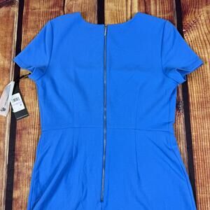 New Karl Lagerfeld Flared Ruffle Dress Womens 6 Blue Short Sleeve Back Zip Paris