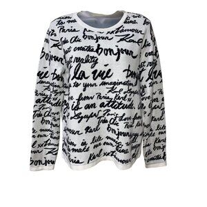 New Karl Lagerfeld Womens Soft White Script Print Pullover Sweater Size M