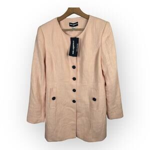 New Karl Lagerfeld Womens size 12 Long Button Front Jacket Blazer Sherbert Pink