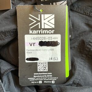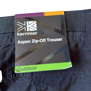 New with tags Karrimor Aspen Zip-Off Convertible Roll Up Pants/Shorts. Black. Nylon Belt. Elastic Waist. Lightweight. Secure Pockets.