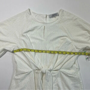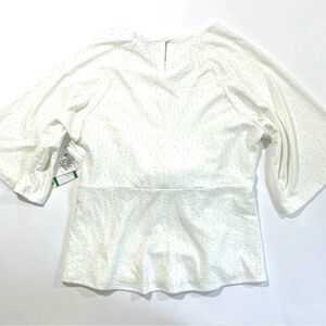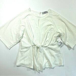 New Kasper Eyelet Blouse Tie Front Vanilla Ice White Size Large Womens