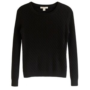 New Kate Hill Black Cotton Cable Knit Crewneck Sweater Long Sleeve Pullover M