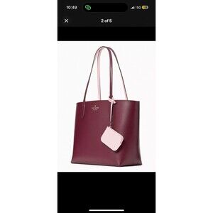 New Kate Spade Ava Reversible Tote with Pouch Double Faced Leather Deep Berry