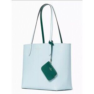 New Kate Spade Ava Reversible Tote with Pouch Double Faced Leather Frosty Ski