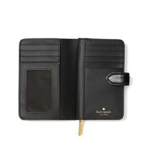 New Kate Spade Bridget Crinkle Patent Medium Compact Bifold Wallet Black