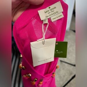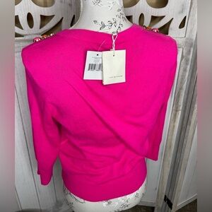New! Kate Spade Jeweled Neck Long Sleeve Button Cardigan Bright Pink Medium