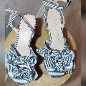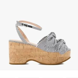 New Kate Spade Julep Platform Wedge White and Blue Striped Size 7