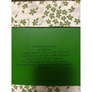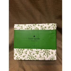New Kate Spade King Bed Sheet Set Green Flower Deep Fitted 100% Cotton Percale