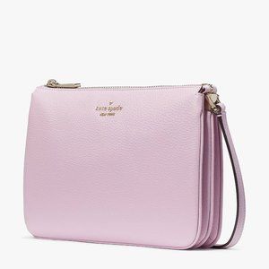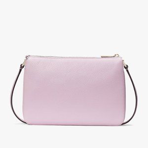 New Kate Spade Leila Pebble Leather Triple Gusset Crossbody Quartz Pink