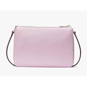 New Kate Spade Leila Pebble Leather Triple Gusset Crossbody Quartz Pink