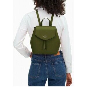 New Kate Spade Lizzie Saffiano Leather Medium Flap Backpack Enchanted Green