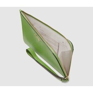 New Kate Spade Lucy Medium L-zip Wristlet Saffiano Leather Turtle Green
