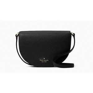 New Kate Spade Luna Crescent Crossbody bag Leather Black