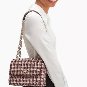 New With Tag Kate Spade Natalia Tweed Pink Multi Small Flap Crossbody/Shoulder Handbag